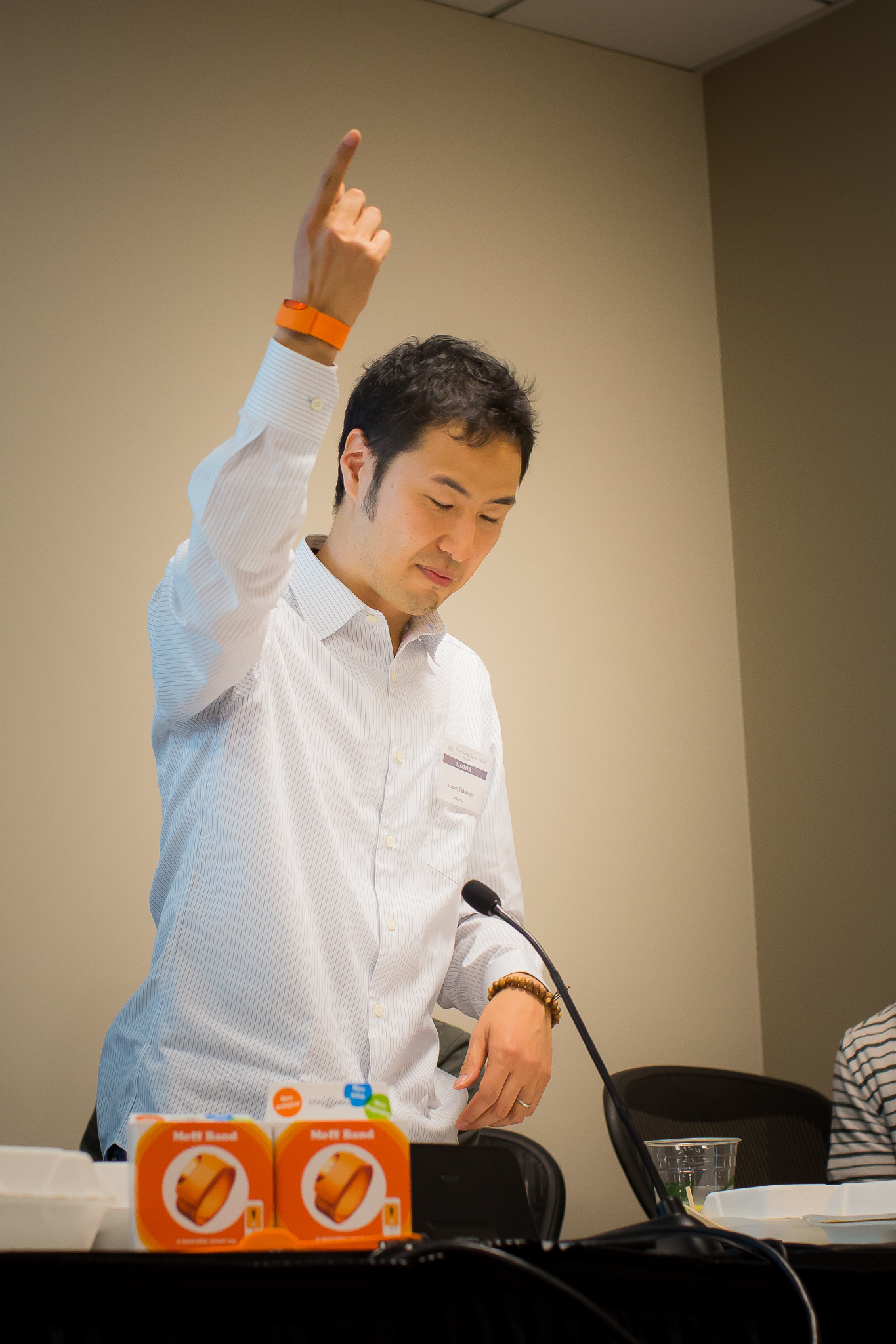 Moff Bandは日本に続き丁度今月米国でも発売になります。米国での滞在中にかなり精力的に活動されたようですっかり声が枯れてしまってましたが、そんなお忙しい中でお話をしに来て頂きました。冒頭ではプロダクトのデモも披露して頂きかなり盛り上がりました。(写真右)